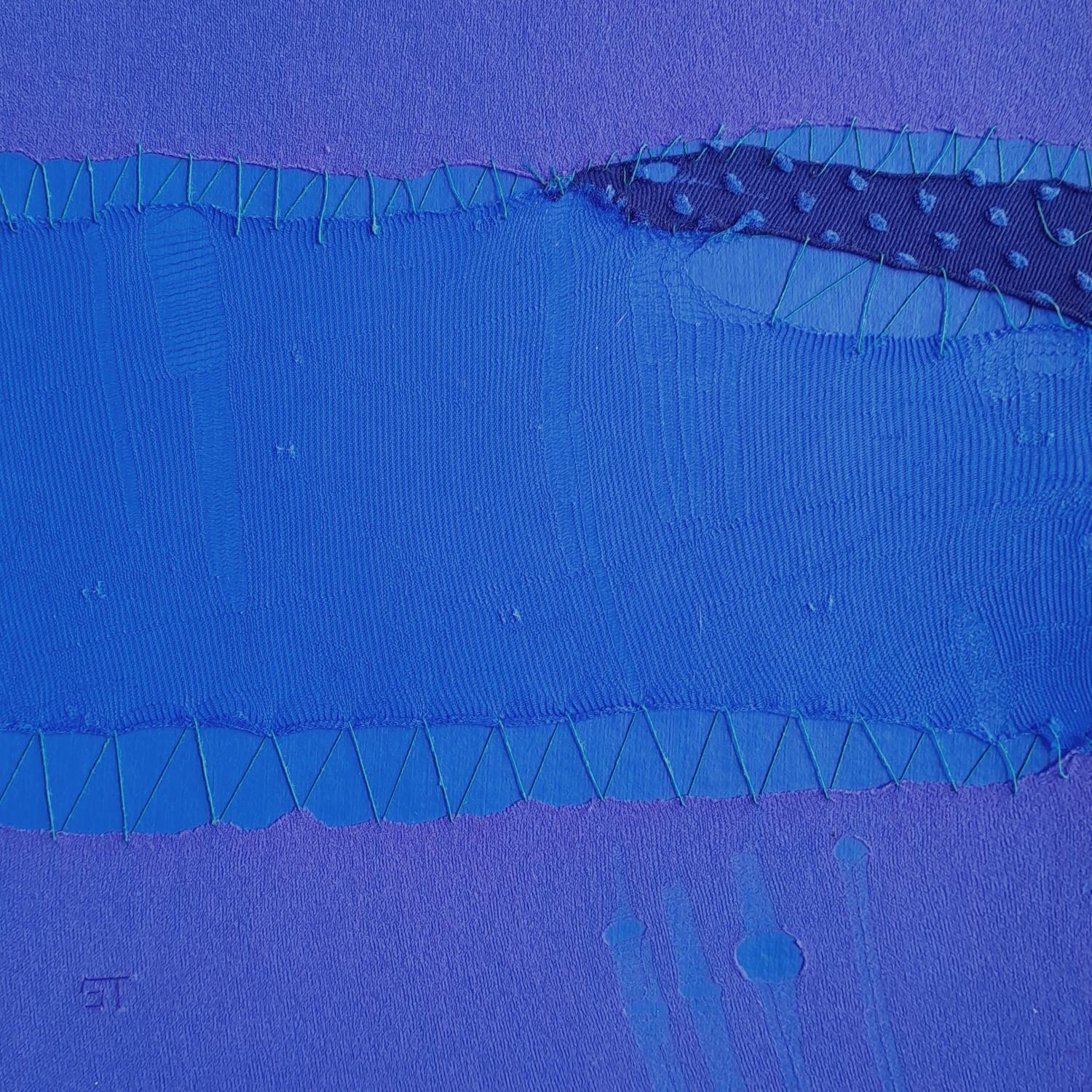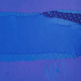 Der Künstler verwendete Acryl, Textil auf Papier, um dieses Kleine Gemälde zum Thema "Landschaften, Minimalistisch" anzufertigen.