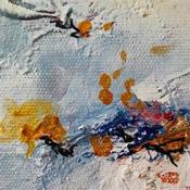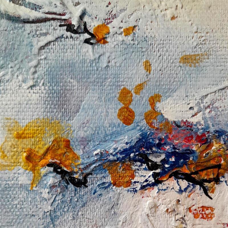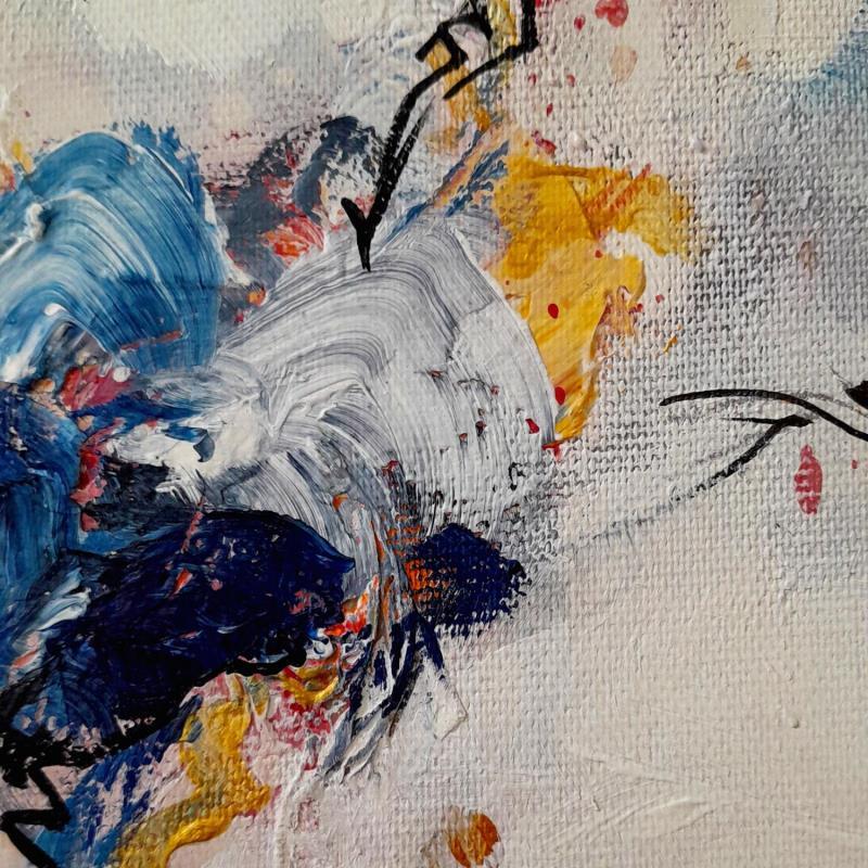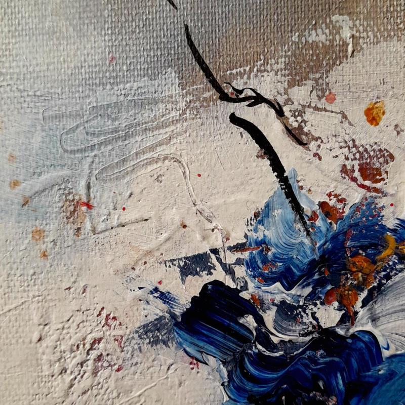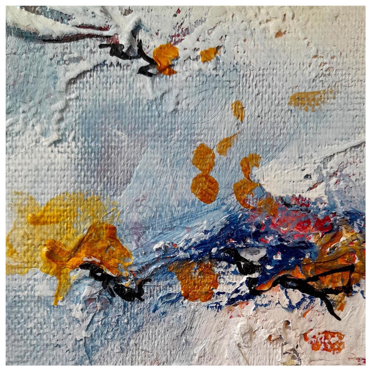 Die Künstlerin verwendete die Acryltechnik, um dieses kleinformatige Gemälde auf Leinwand im abstrakten Stil zu schaffen.