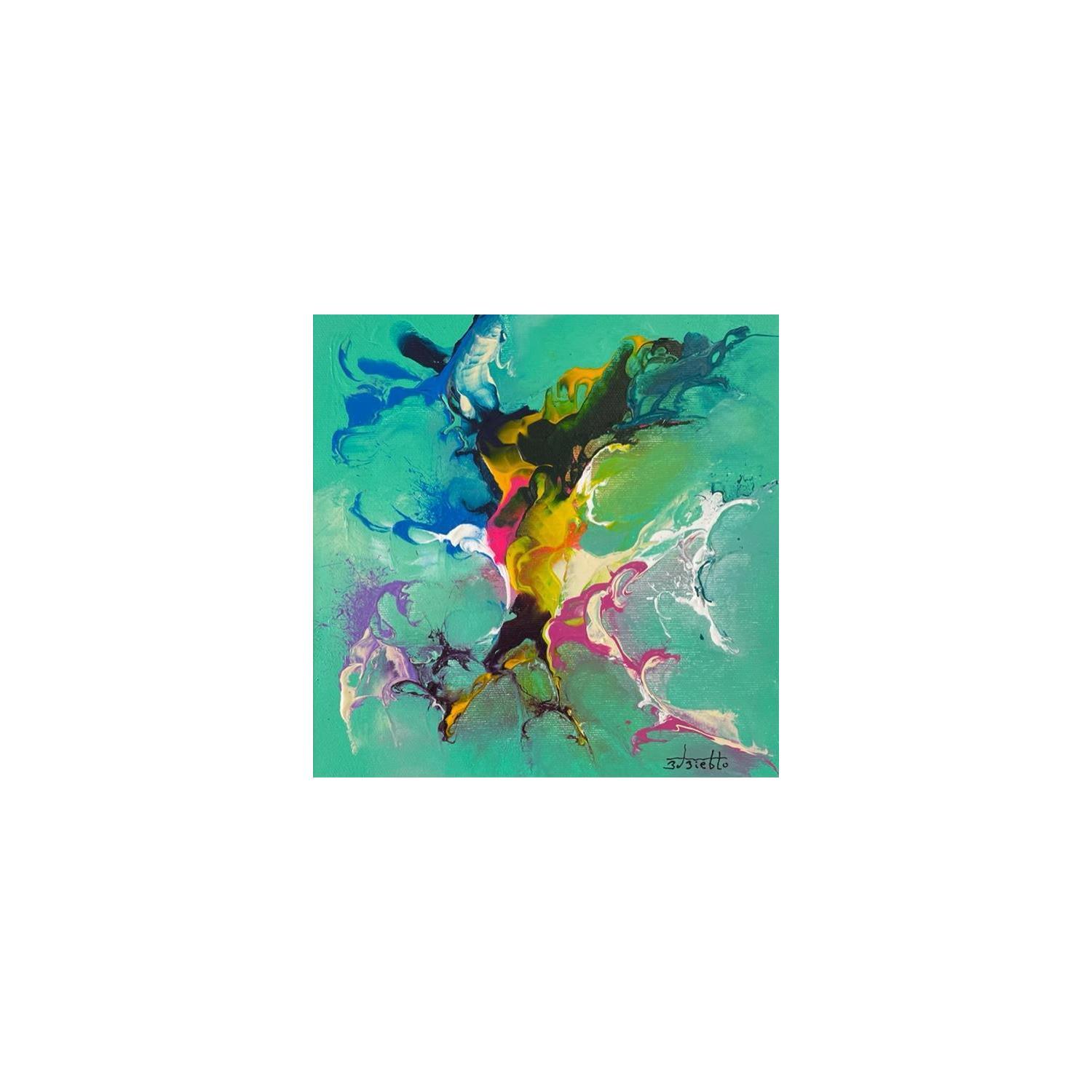 Der Künstler verwendete Acryl auf Leinwand, um dieses Kleine Gemälde anzufertigen.