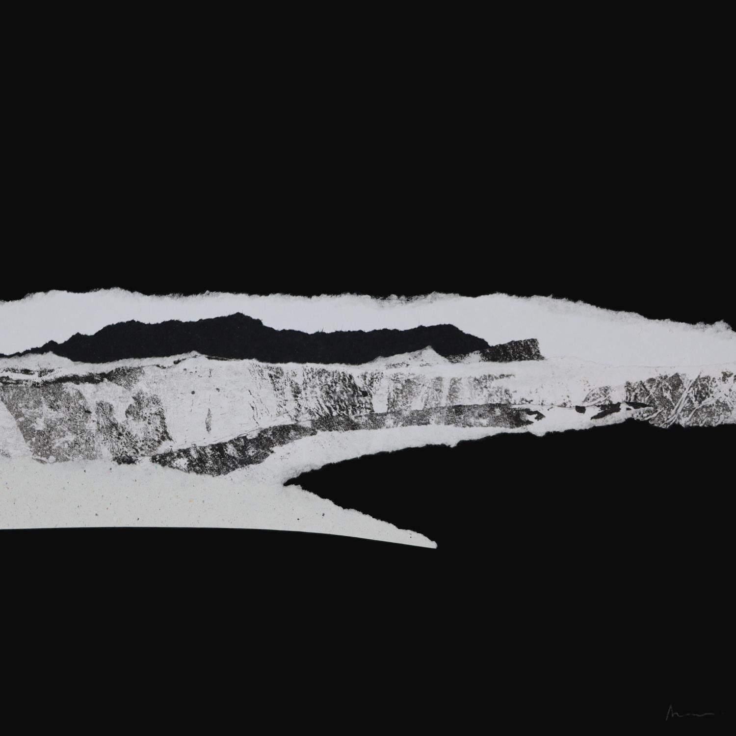 Der Künstler verwendete Collage auf Papier, um dieses Kleine Gemälde zum Thema "Landschaften, Minimalistisch, Schwarz & Weiß" anzufertigen.