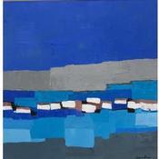 Die Künstlerin verwendete die Technik Acryl und Marmorpulver, um dieses kleinformatige Gemälde auf Papier im abstrakten Stil mit dem Thema Marines zu schaffen.