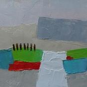 Der Künstler verwendete Öl auf Leinenkarton, um dieses Kleine Gemälde anzufertigen.
