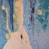 Der Künstler verwendete Öl auf Papier, um dieses Kleine Gemälde zum Thema "Urban, Alltagsszenen" anzufertigen.