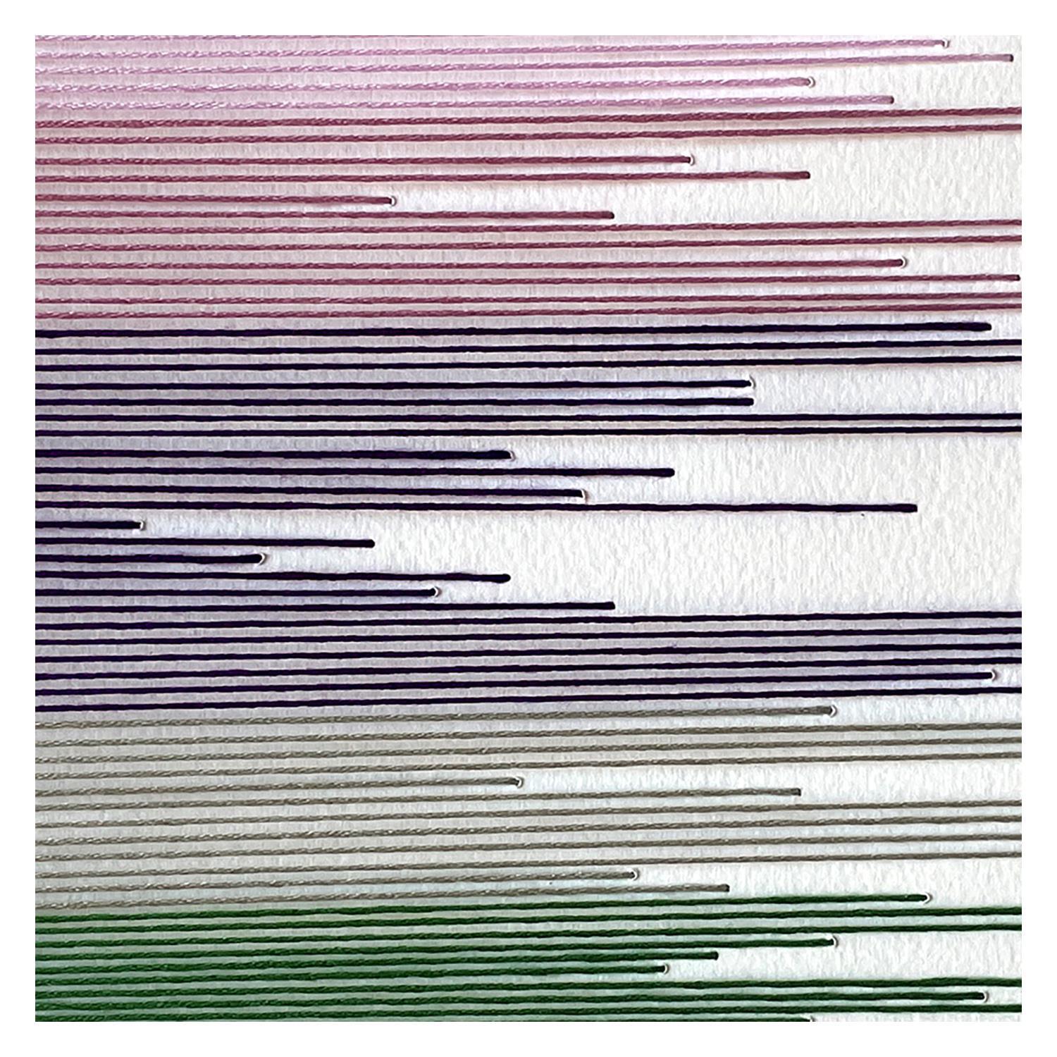 Die Künstlerin hat verschiedene Techniken (Stickerei auf Aquarellpapier) verwendet, um dieses Gemälde im Zwischenformat mit seinem einzigartigen Stil zu schaffen.