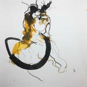 Der Künstler verwendete Acryl, Tinte auf Papier, um dieses Kleine Gemälde zum Thema "Akt" anzufertigen.