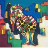 Der Künstler verwendete Acryl auf Papier, um dieses Kleine Gemälde zum Thema "Alltagsszenen" anzufertigen.