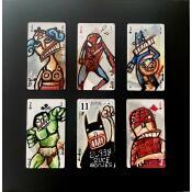 Dieses einzigartige und originale zeitgenössische Kunstwerk "La ligue des burnes et son chef" in dem Stil "Art brut" wurde von dem zeitgenössischen Künstler Doudoudidon kreiert.