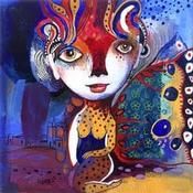 Der Künstler verwendete Acryl auf Papier, um dieses Kleine Gemälde zum Thema "Porträt" anzufertigen.