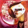 Der Künstler verwendete Acryl auf Papier, um dieses Kleine Gemälde zum Thema "Porträt" anzufertigen.