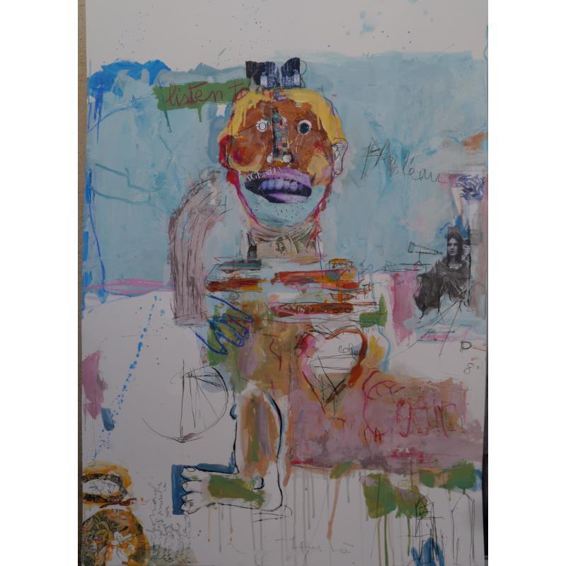 Dieses einzigartige und originale zeitgenössische Kunstwerk "Listen to" in dem Stil "Art brut" wurde von dem zeitgenössischen Künstler De Sousa Miguel kreiert.