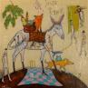 Der Künstler verwendete Pastell, Acryl, Collage auf Leinenkarton, um dieses Kleine Gemälde zum Thema "Tiere" anzufertigen.