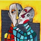 Dieses einzigartige und originale zeitgenössische Kunstwerk "Abrazos Mudos" in dem Stil "Art brut" wurde von dem zeitgenössischen Künstler Gorigoitia Karla kreiert.