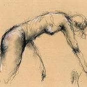 Der Künstler verwendete Acryl, um dieses Kleine Gemälde zum Thema "Akt" anzufertigen.