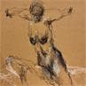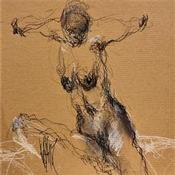 Der Künstler verwendete Acryl auf Pappe, um dieses Kleine Gemälde zum Thema "Akt" anzufertigen.