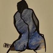 Der Künstler verwendete Acryl auf Papier, um dieses Kleine Gemälde zum Thema "Akt" anzufertigen.