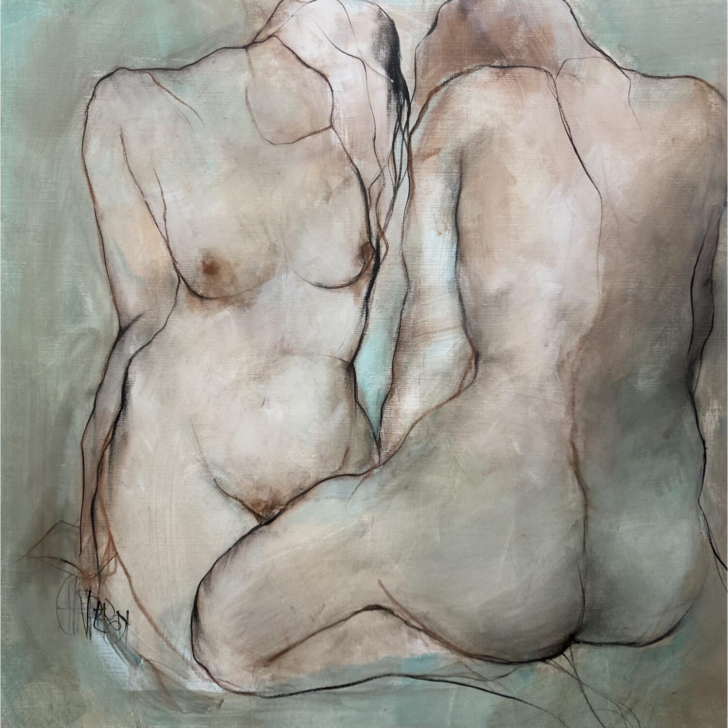 Dieses einzigartige und originale zeitgenössische Kunstwerk "Les coprs se souviennent" in dem Stil "Figurativ" wurde von dem zeitgenössischen Künstler Chaperon Martine kreiert.