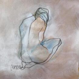 Die Künstlerin verwendete die Acryltechnik, um dieses kleinformatige Gemälde auf Papier im figurativen Stil mit dem Thema Akt zu schaffen.