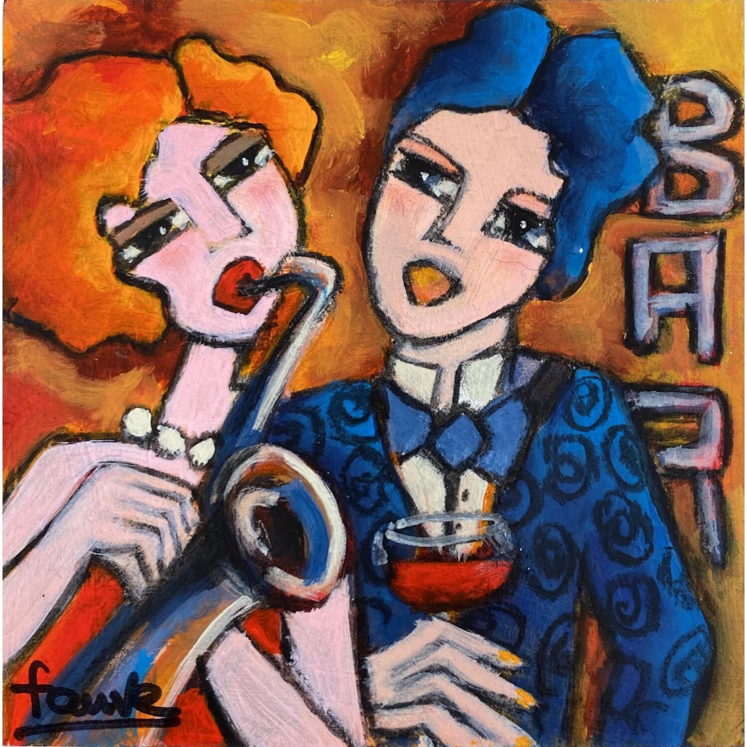 Dieses einzigartige und originale zeitgenössische Kunstwerk "Gentleman et musicienne " in dem Stil "Figurativ" wurde von dem zeitgenössischen Künstler Fauve kreiert.