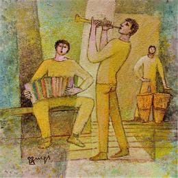 Dieses einzigartige und originale zeitgenössische Kunstwerk "AK139 Les 3 musiciens" in dem Stil "Figurativ" wurde von dem zeitgenössischen Künstler Burgi Roger kreiert.