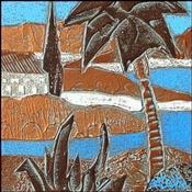 Der Künstler verwendete Acryl, Pappe auf Pappe, um dieses Kleine Gemälde zum Thema "Landschaften" anzufertigen.