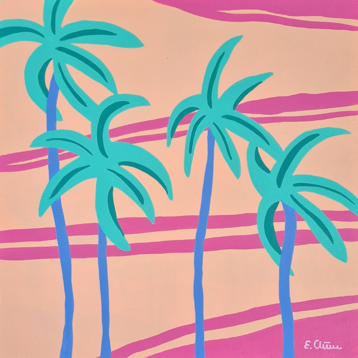 Gemälde Palmiers von Emilie Chêne | Gemälde Figurativ Landschaften Natur Acryl