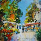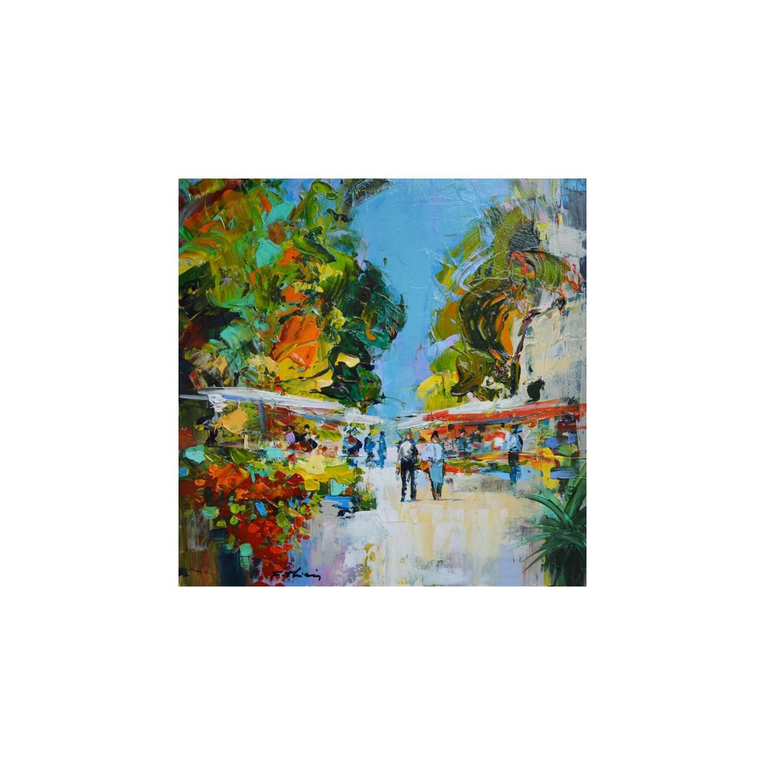 Dieses einzigartige und originale zeitgenössische Kunstwerk "Flowers market" in dem Stil "Figurativ" wurde von dem zeitgenössischen Künstler Frédéric Thiery kreiert.