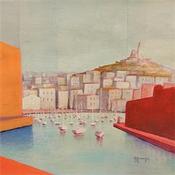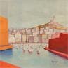 Der Künstler verwendete Acryl auf Papier, um dieses Kleine Gemälde zum Thema "Landschaften, Urban, Marine" anzufertigen.