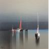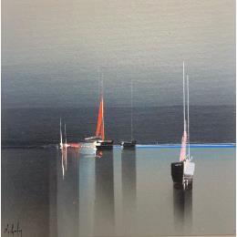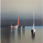 Der Künstler verwendete Acryl auf Leinenkarton, um dieses Kleine Gemälde zum Thema "Marine, Minimalistisch" anzufertigen.