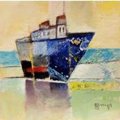 Dieses einzigartige und originale zeitgenössische Kunstwerk "Le grand bateau bleu AL3" in dem Stil "Figurativ" wurde von dem zeitgenössischen Künstler Burgi Roger kreiert.