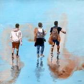 Dieses einzigartige und originale zeitgenössische Kunstwerk "photographe et assistants de plage" in dem Stil "Figurativ" wurde von dem zeitgenössischen Künstler Sand kreiert.