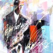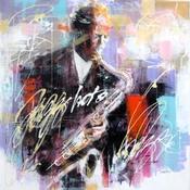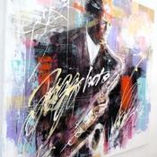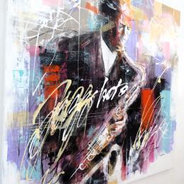 Der Künstler verwendete Acryl auf Leinwand, um dieses Große Gemälde zum Thema "Musik" anzufertigen.
