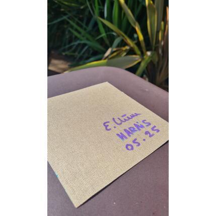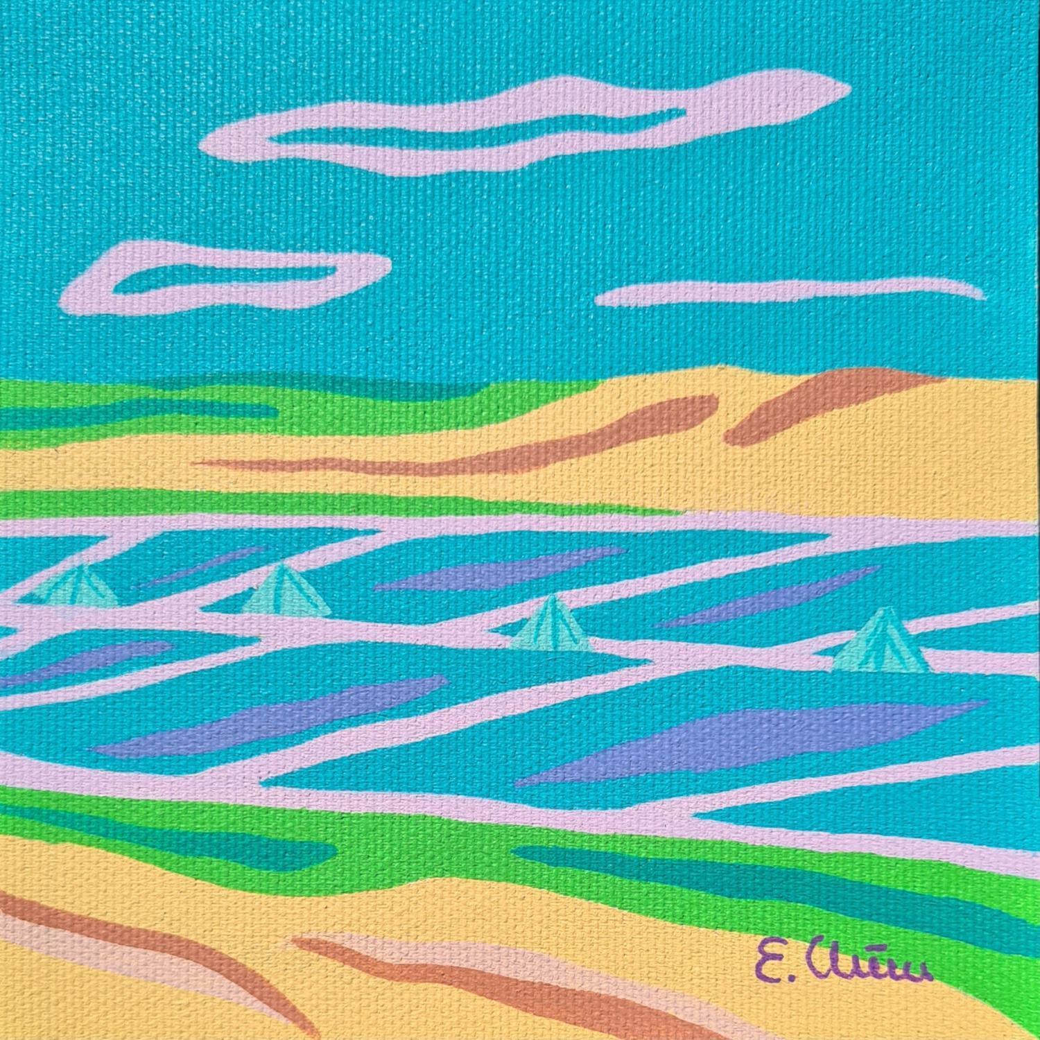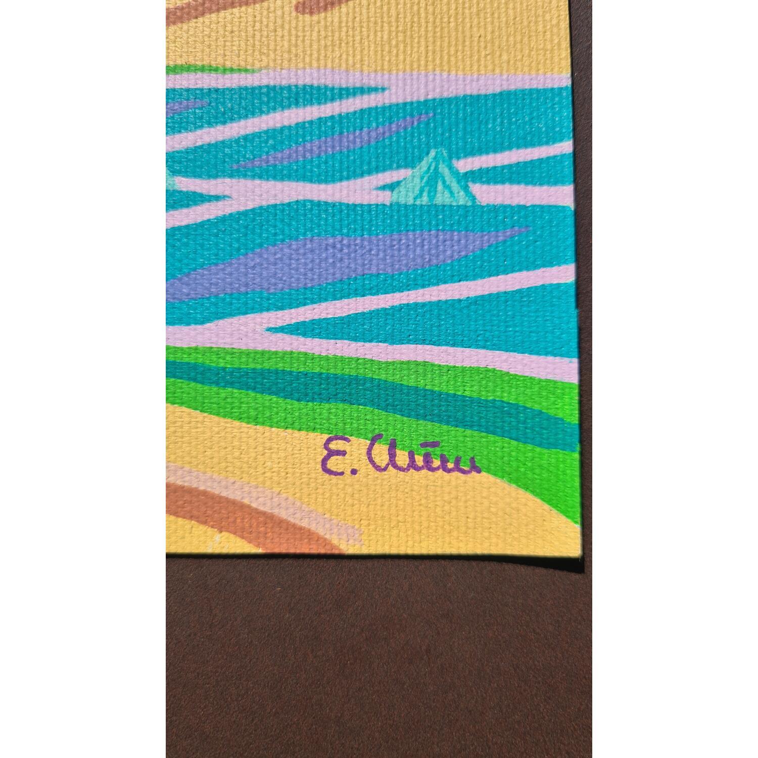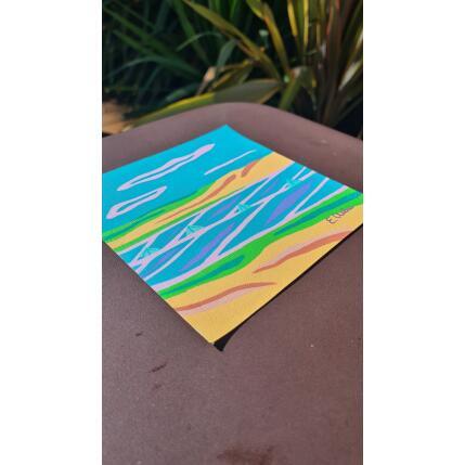 Die Künstlerin verwendete Acrylfarben, um dieses kleinformatige Gemälde mit seinem einzigartigen Stil zu schaffen.