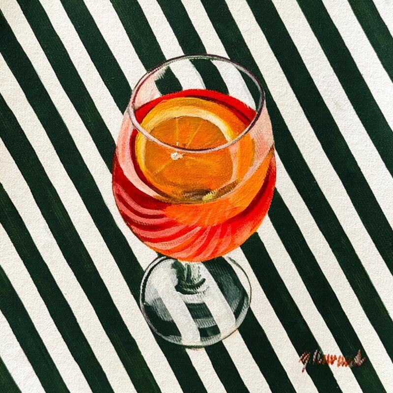 Dieses einzigartige und originelle zeitgenössische Kunstwerk „DRINK N°4 – SPRITZ” wurde von der zeitgenössischen Künstlerin Clavaud Morgane geschaffen. Die Künstlerin verwendete die Acryltechnik, um dieses kleinformatige Gemälde im figurativen Stil auf Denim zu schaffen.