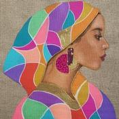Der Künstler verwendete Acryl auf Leinwand, um dieses Kleine Gemälde zum Thema "Porträt" anzufertigen.