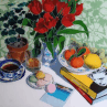 Der Künstler verwendete die Techniken Acryl, Posca, um dieses großformatige Gemälde auf Plexiglas im figurativen Stil mit dem Thema Stillleben zu schaffen.