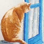 Der Künstler verwendete Acryl, Holz auf Holz, um dieses Kleine Gemälde zum Thema "Tiere" anzufertigen.