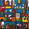 Der Künstler verwendete Acryl auf Pappe, um dieses Kleine Gemälde zum Thema "Urban" anzufertigen.