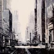 Der Künstler verwendete die Acryltechnik, um dieses kleinformatige Gemälde auf Leinwand im figurativen Stil mit dem Thema Urban zu schaffen.