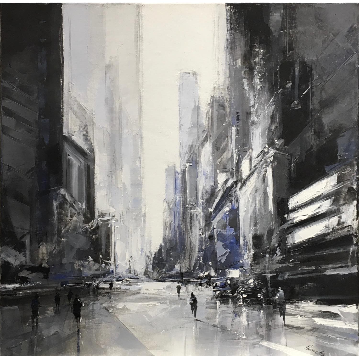 Der Künstler verwendete Acryl, Öl auf Leinwand, um dieses Große Gemälde zum Thema "Urban" anzufertigen.