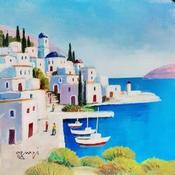 Dieses einzigartige und originale zeitgenössische Kunstwerk "AQ123 PAYSAGE GREC" in dem Stil "Figurativ" wurde von dem zeitgenössischen Künstler Burgi Roger kreiert.