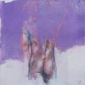 Dieses kleine Acrylgemälde auf Leinwand ist ein fesselndes Werk, das Einfachheit und emotionale Tiefe vereint. Vor einem vibrierenden violetten Hintergrund taucht anmutig eine männliche Silhouette auf, die durch fließende Linien und kontrastierende Farbakzente skizziert wird. Die Rosa- und Blautöne verleihen der Komposition eine Dimension der Sanftheit und des Geheimnisvollen.