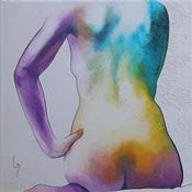 Der Künstler verwendete Aquarell, Acryl auf Leinwand, um dieses Große Gemälde zum Thema "Akt" anzufertigen.