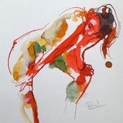 Gemälde Johanna mains sur les genoux von Brunel Sébastien | Gemälde Figurativ Akt Aquarell