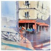 Der Künstler verwendete Aquarell, Tinte auf Papier, um dieses Kleine Gemälde zum Thema "Architektur, Urban" anzufertigen.