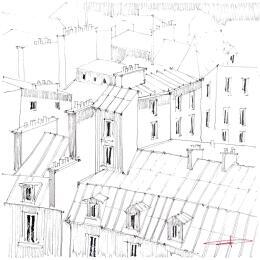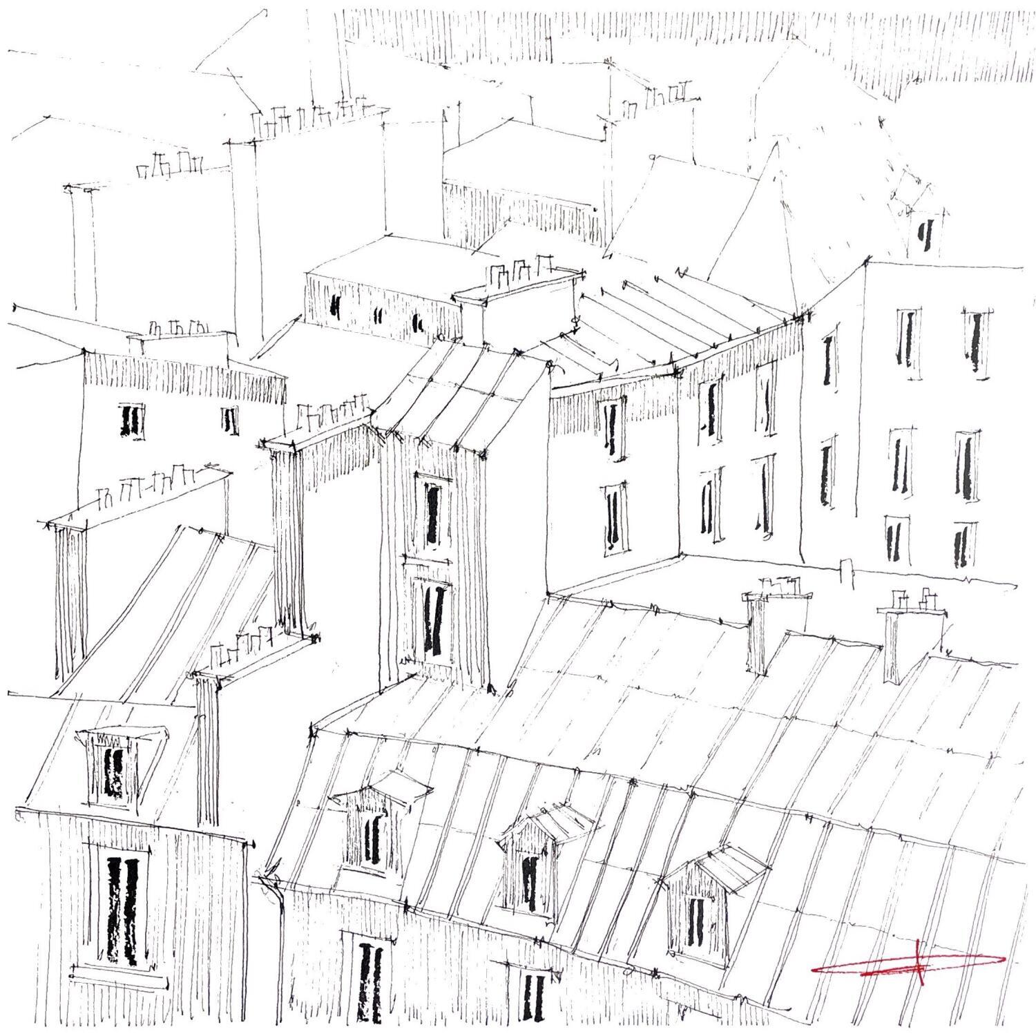 The roofs of Paris are for you ! Gemälde The roofs of Paris are for you !  von Bailly Kévin  | Gemälde Figurativ Urban Architektur Aquarell Tinte