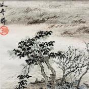 Der Künstler verwendete Aquarell auf Papier, um dieses Kleine Gemälde zum Thema "Landschaften" anzufertigen.