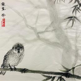 StareGemälde Stare von Amblard Rui | Gemälde Figurativ Landschaften Alltagsszenen Tiere Aquarell