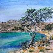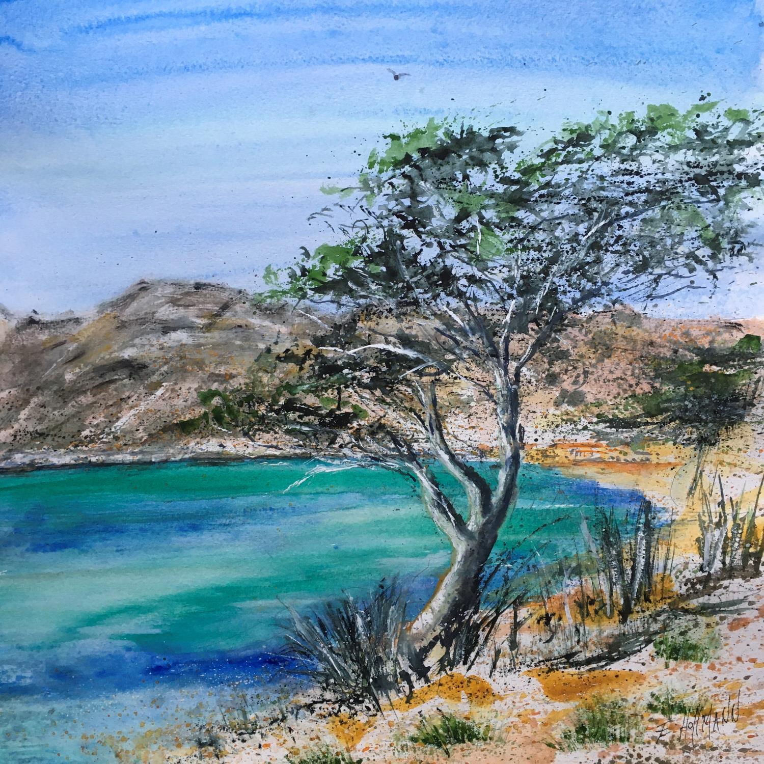 Die Künstlerin verwendete die Aquarelltechnik, um dieses kleinformatige Gemälde auf Papier im figurativen Stil mit dem Thema Marine zu schaffen.