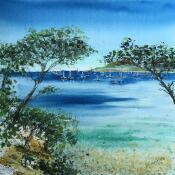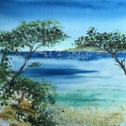 Die Künstlerin verwendete die Aquarelltechnik, um dieses kleinformatige Gemälde auf Papier im figurativen Stil mit dem Thema Marine zu schaffen.