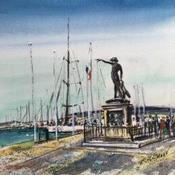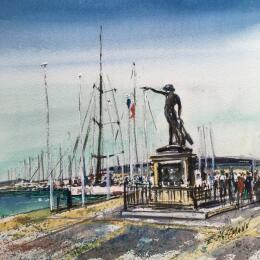 Die Künstlerin verwendete die Aquarelltechnik, um dieses kleinformatige Gemälde auf Papier im figurativen Stil mit dem Thema Urban zu schaffen.